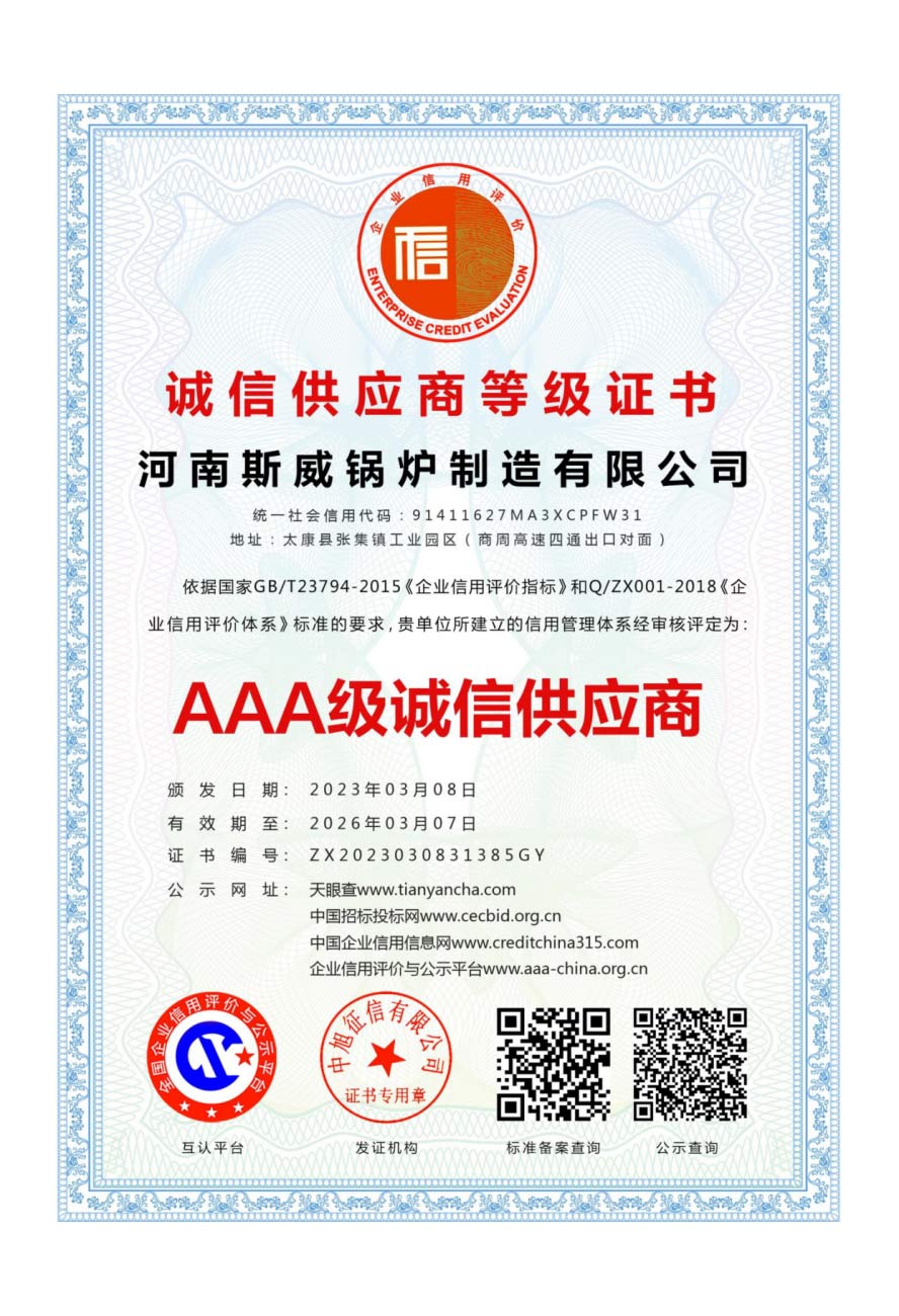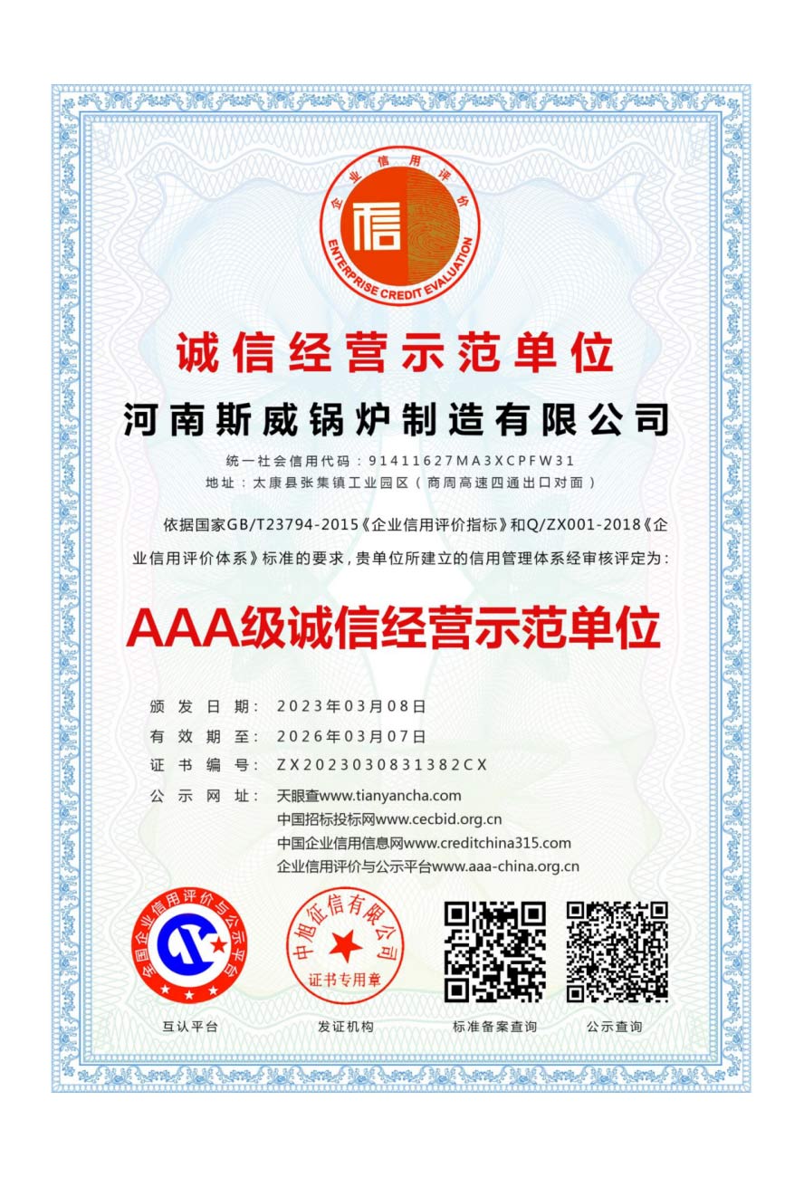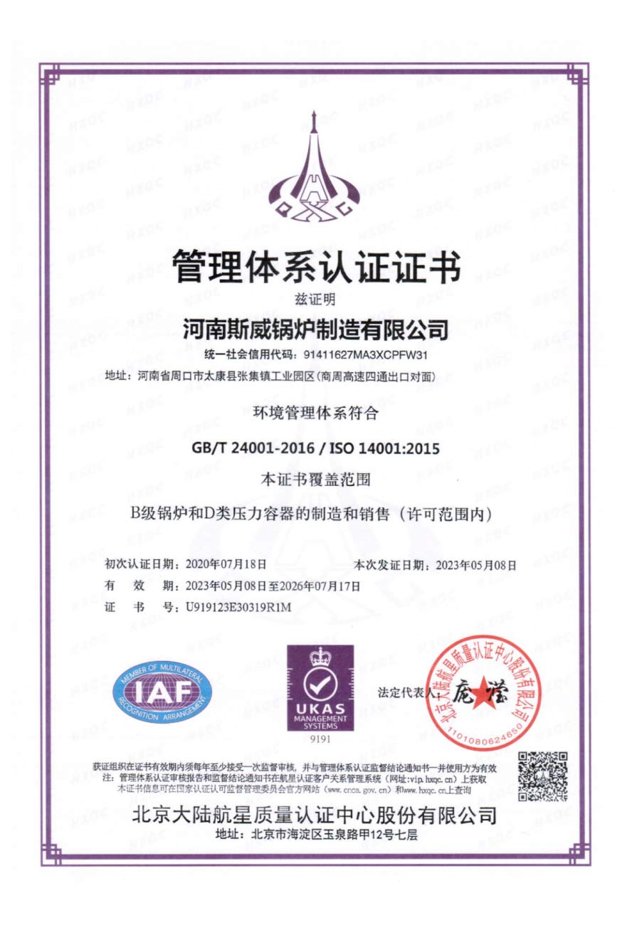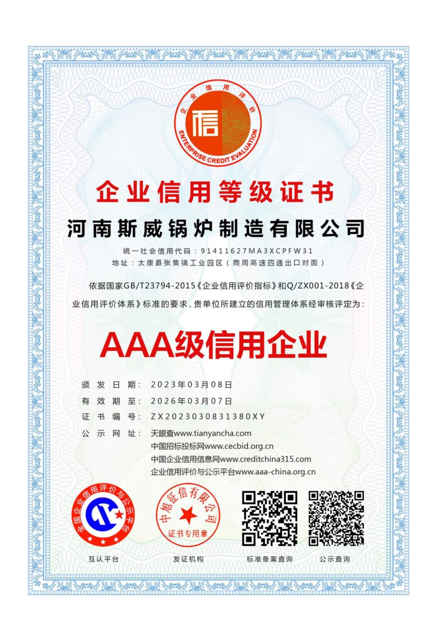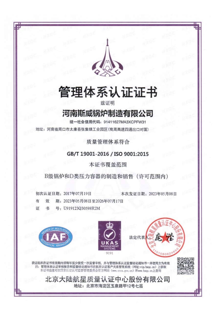斯威锅炉的质量管理体系通过ISO9000、SGS权威系列认证。