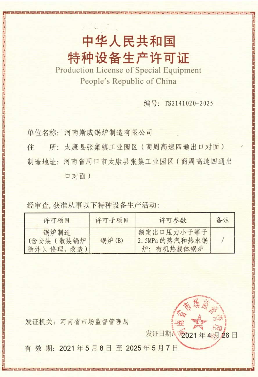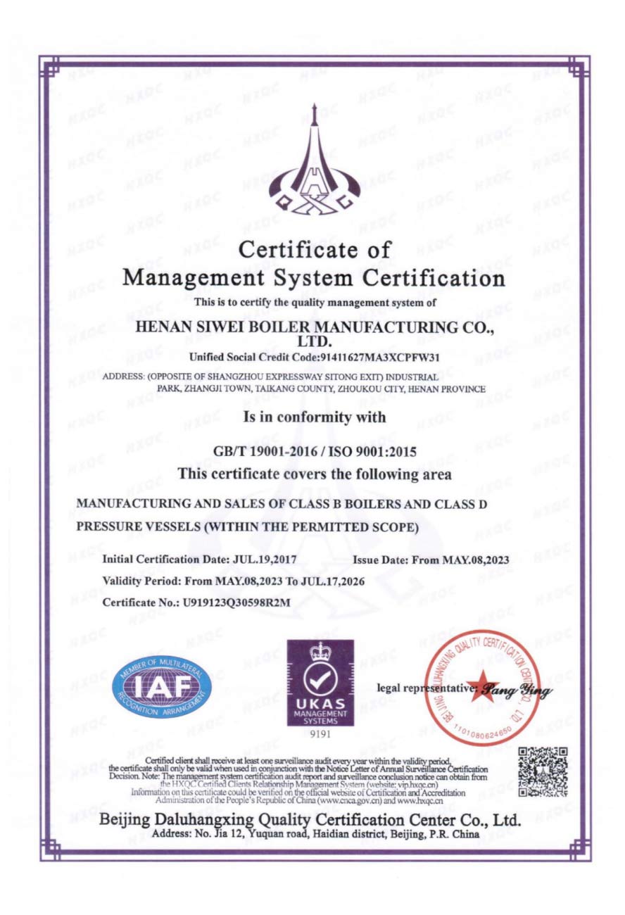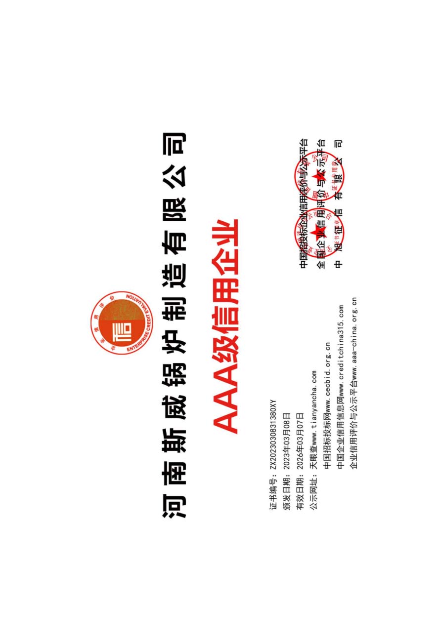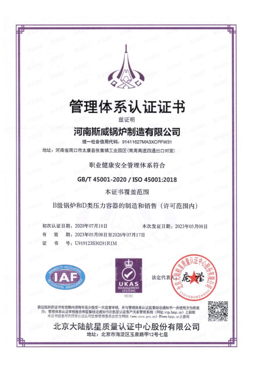 斯威锅炉的质量管理体系通过ISO9000、SGS权威系列认证。