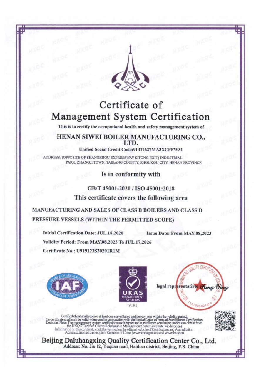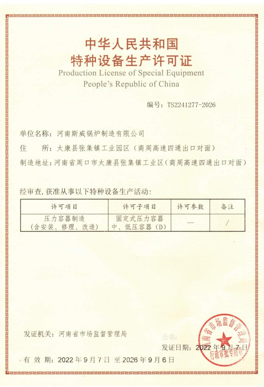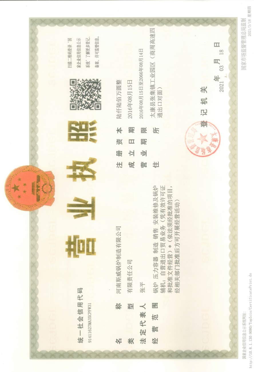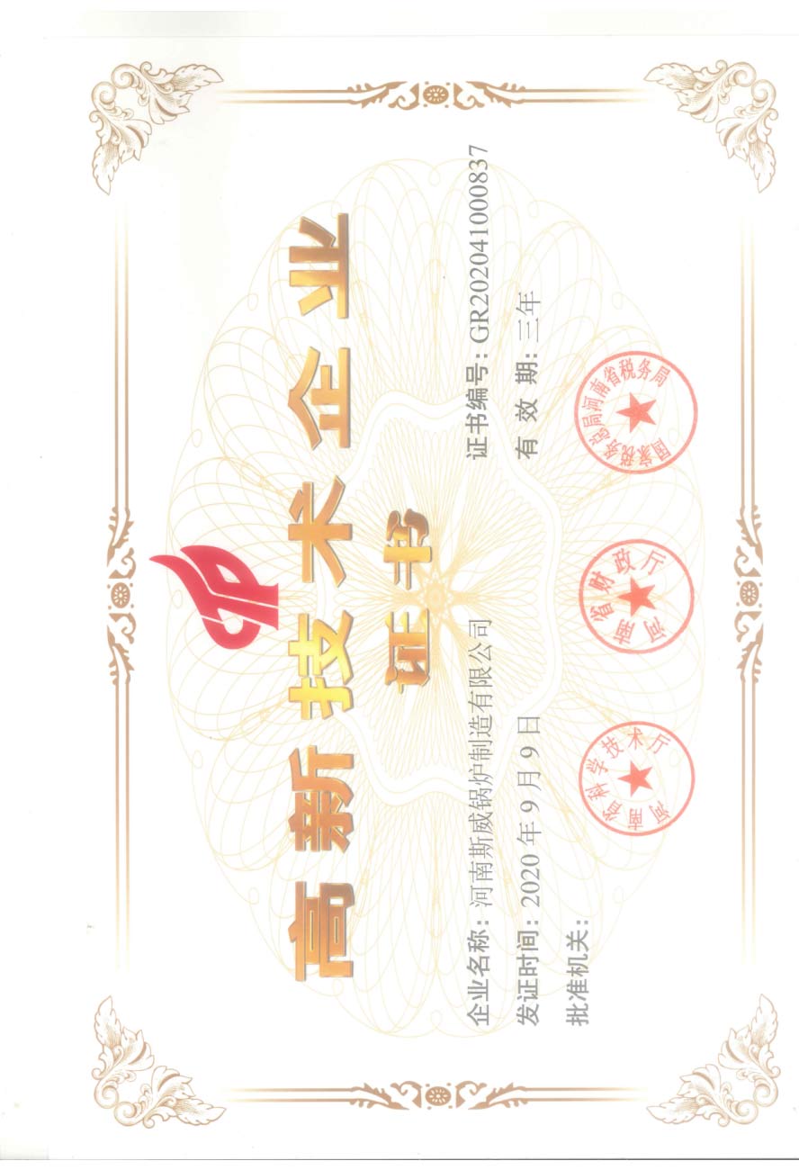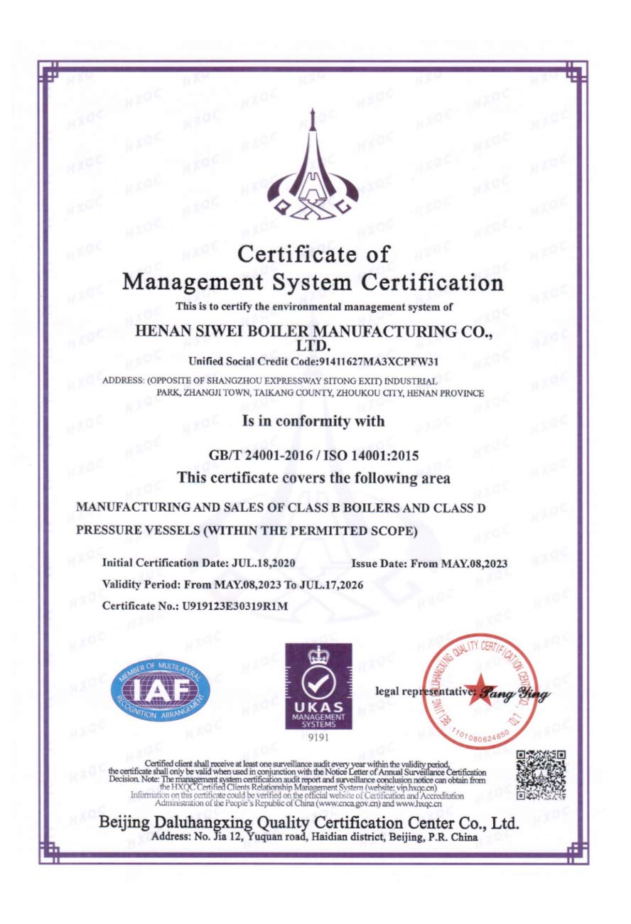 斯威锅炉的质量管理体系通过ISO9000、SGS权威系列认证。